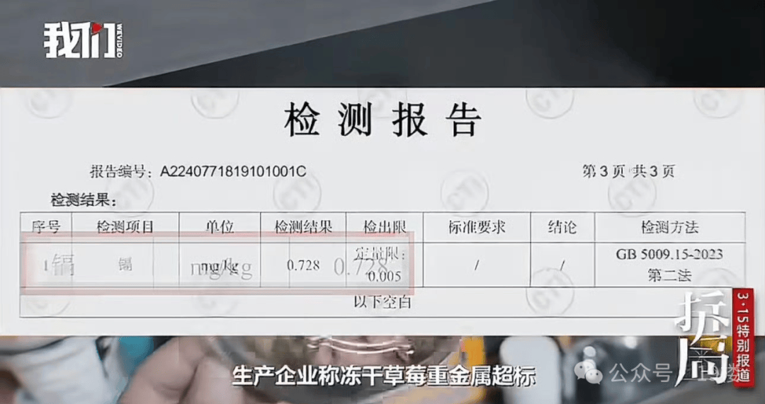 公司采购的21吨冻干草莓沉金属镉严沉超标14.56倍,损害肾净和骨骼。看似甘旨!